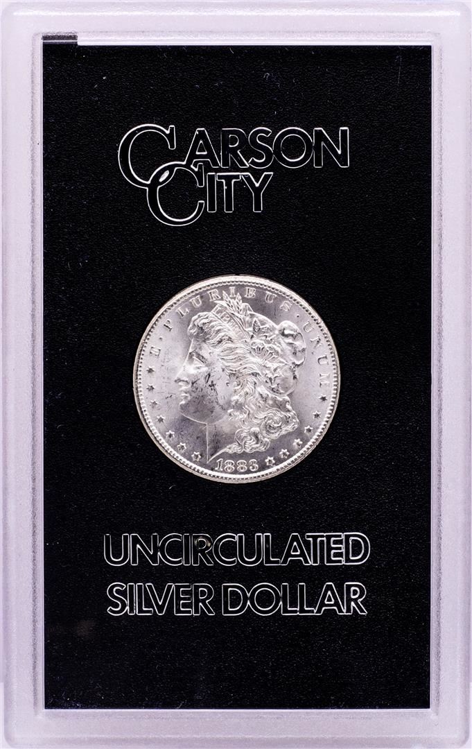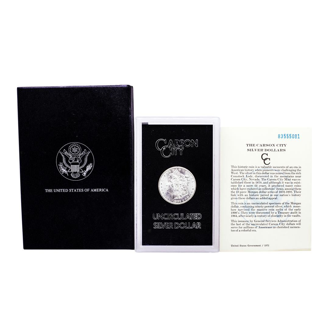 One 1883-CC $1 Morgan Silver Dollar Coin GSA Hoard Uncirculated w/Box & COA.