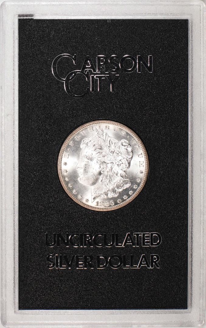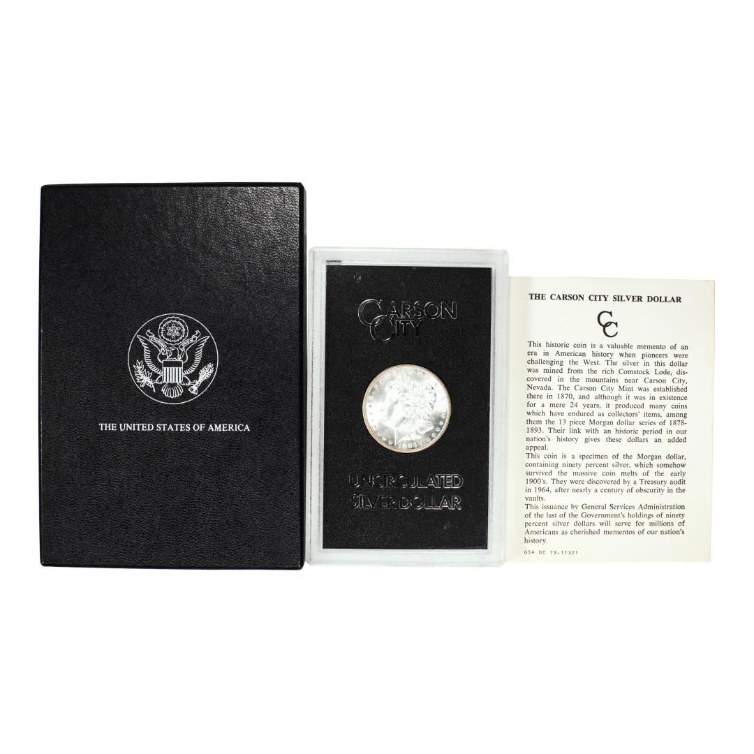 One 1883-CC $1 Morgan Silver Dollar Coin GSA Hoard Uncirculated w/Box & COA.