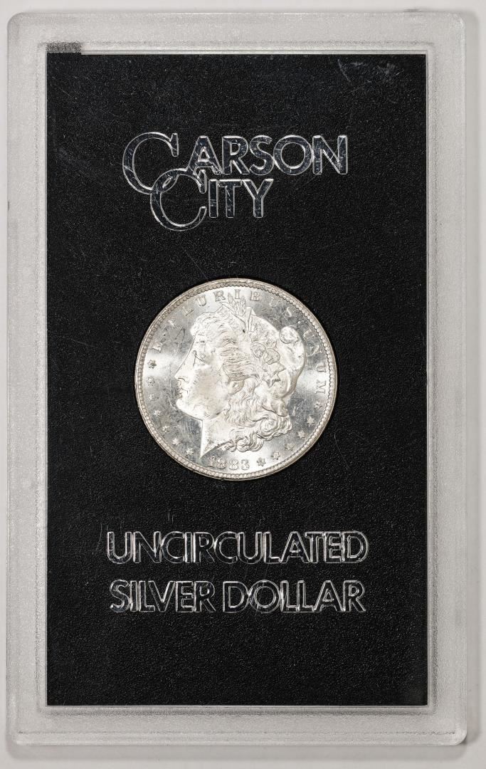 One 1883-CC $1 Morgan Silver Dollar Coin GSA Hoard Uncirculated w/Box & COA.