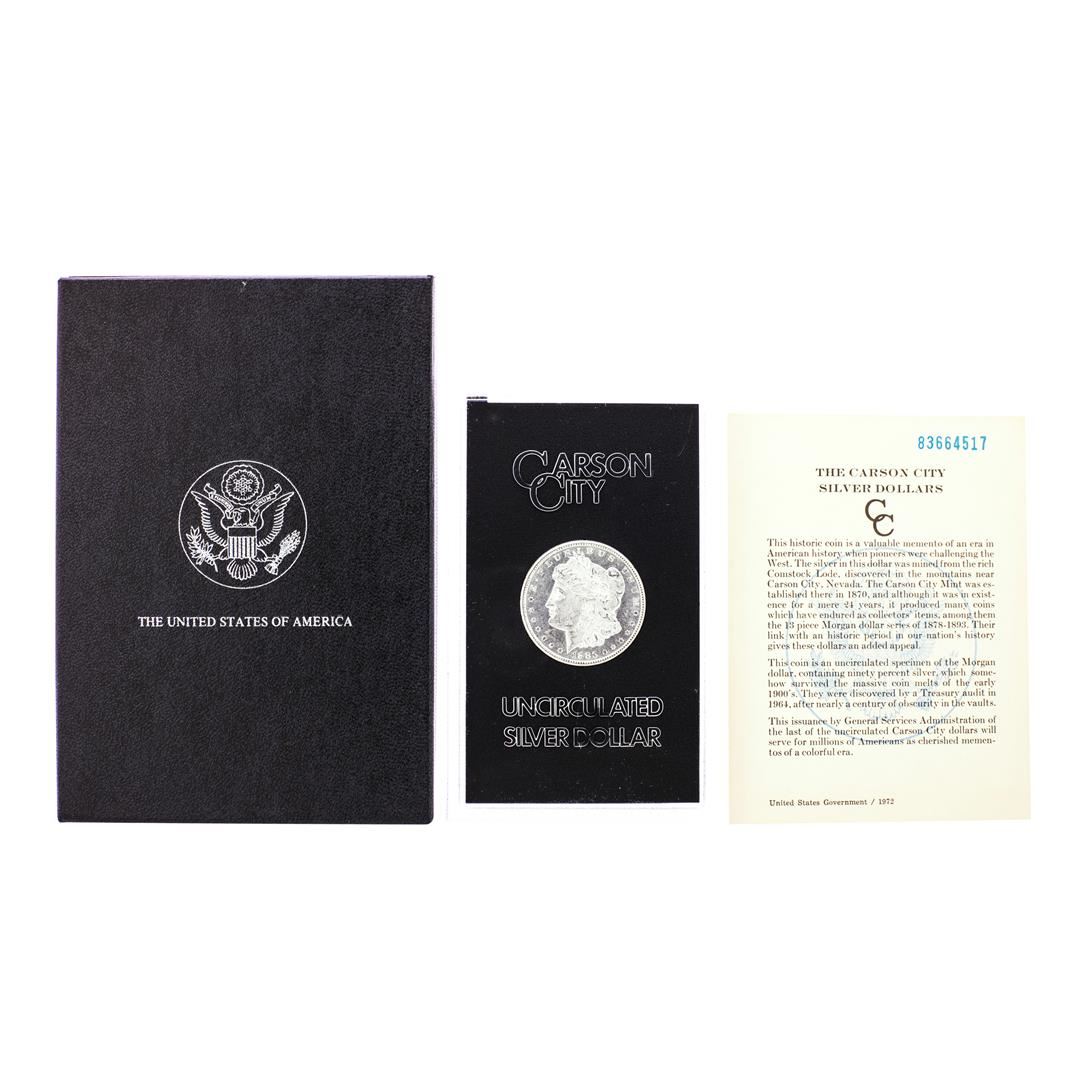 One 1883-CC $1 Morgan Silver Dollar Coin GSA Hoard Uncirculated with Box & COA.
