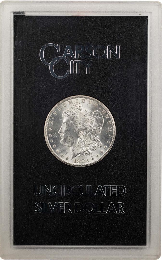 One 1883-CC $1 Morgan Silver Dollar Coin GSA Hoard Uncirculated.