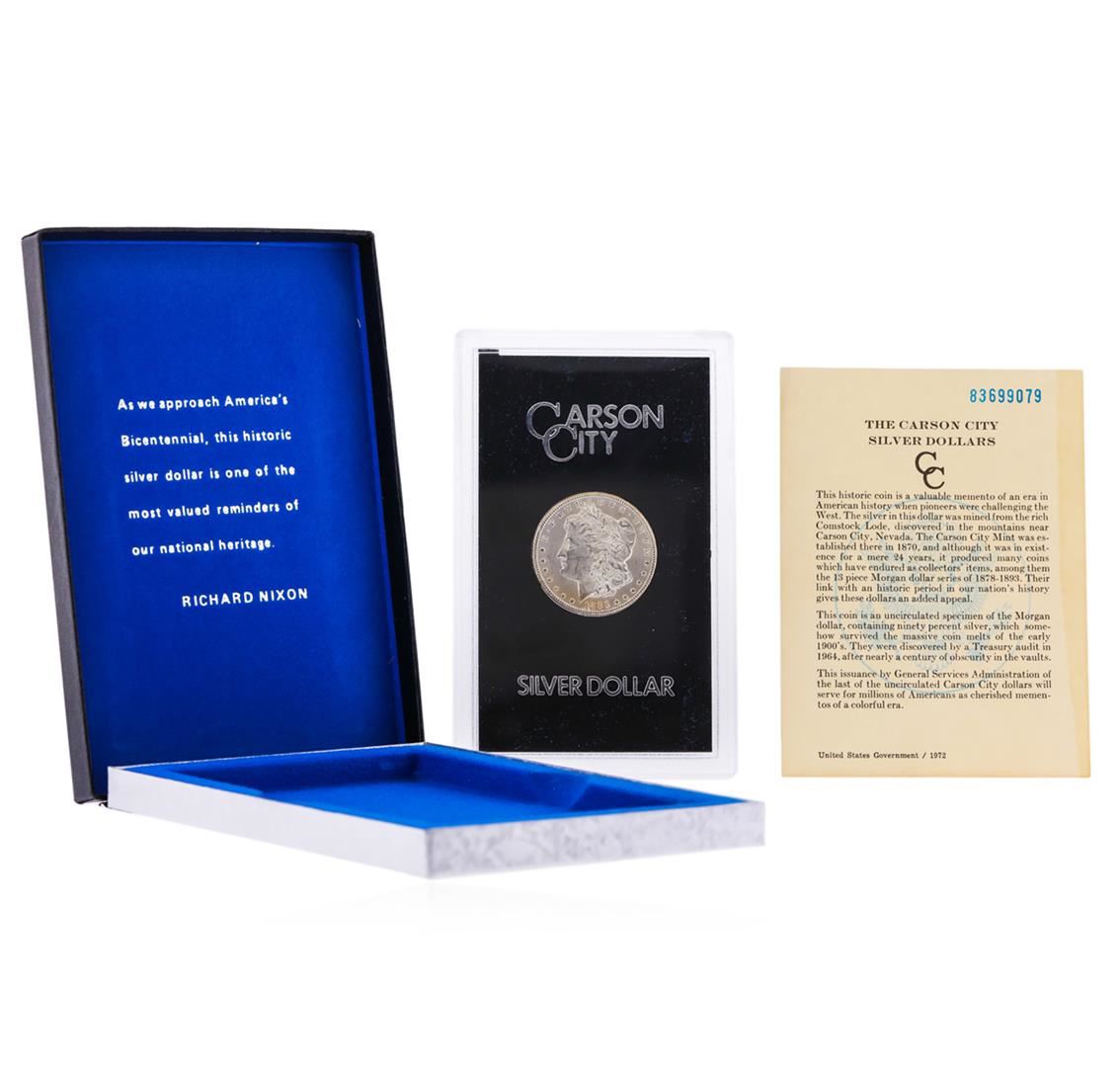 One 1883-CC $1 Morgan Silver Dollar Coin GSA Holder w/Box and COA.