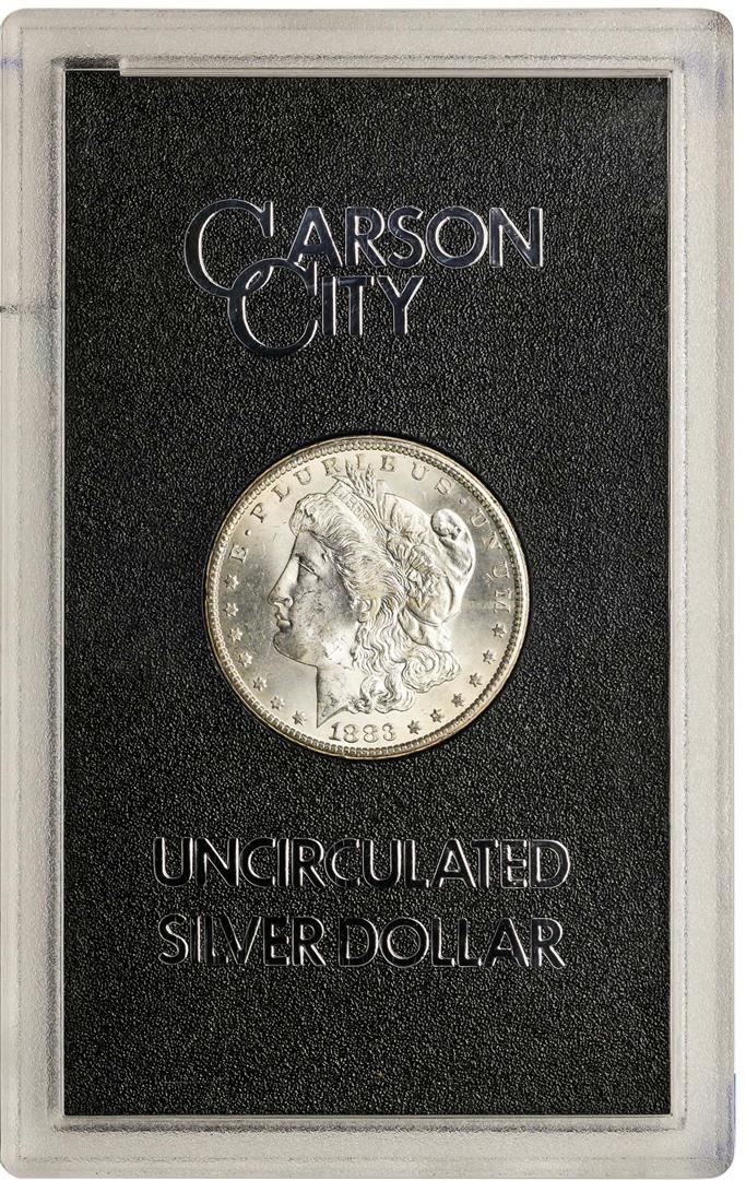 One 1883-CC $1 Morgan Silver Dollar Coin GSA Uncirculated.