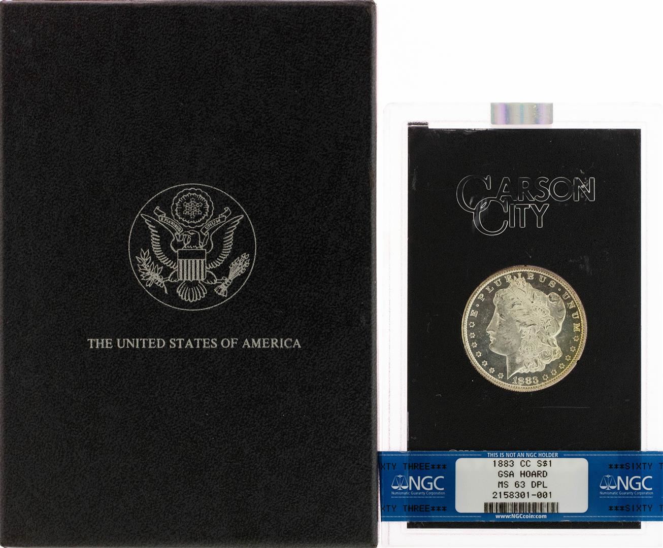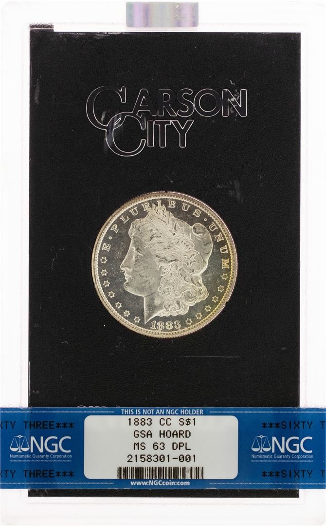 One 1883-CC $1 Morgan Silver Dollar Coin GSA w/ Box NGC MS63DPL. NGC Certified.