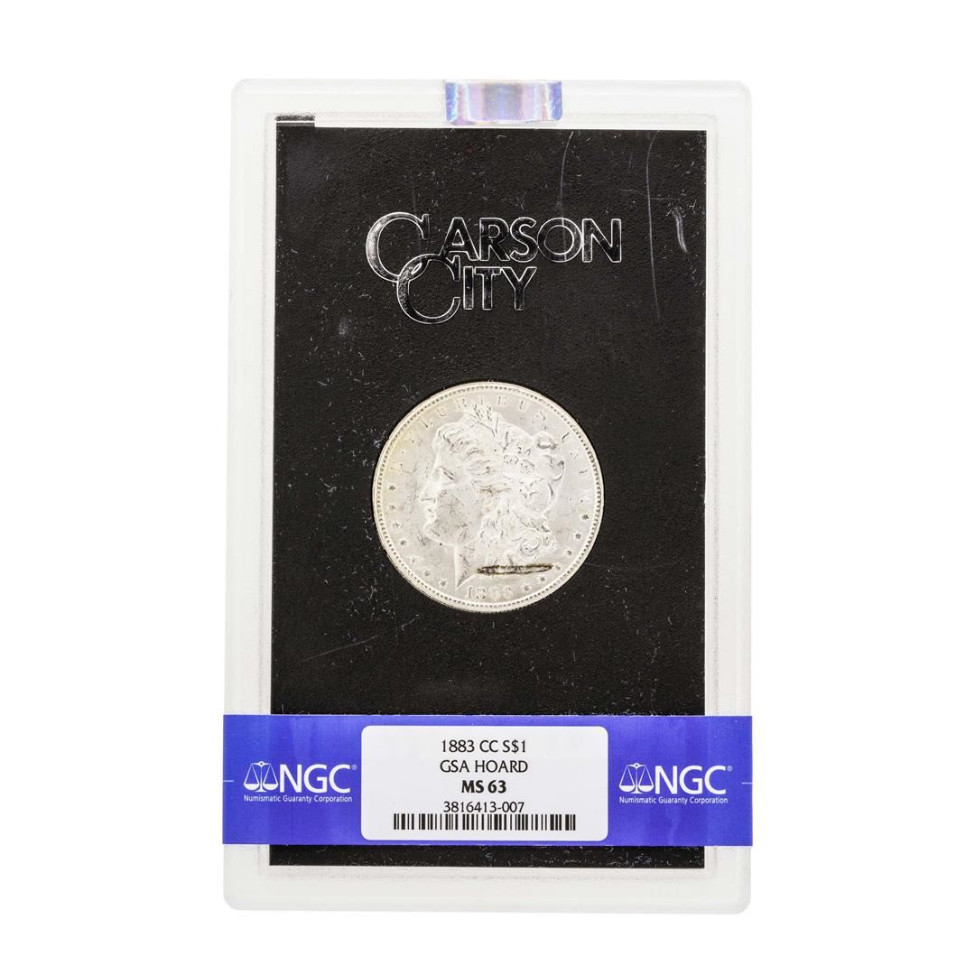 One 1883-CC $1 Morgan Silver Dollar Coin NGC MS63 GSA. NGC Certified.