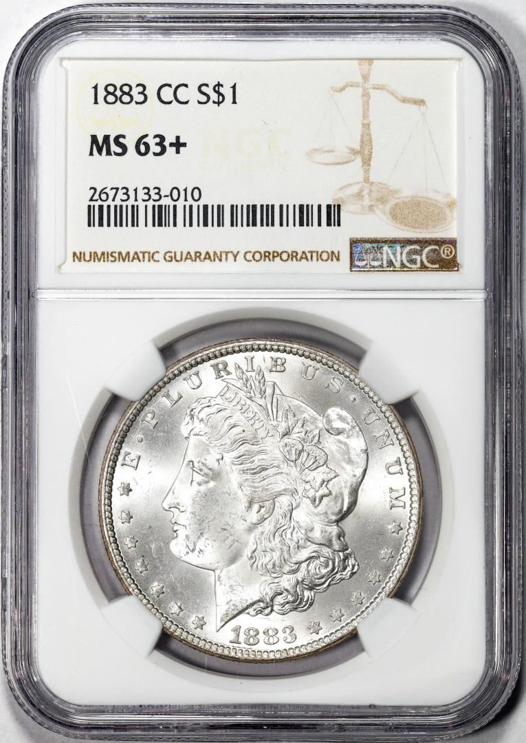One 1883-CC $1 Morgan Silver Dollar Coin NGC MS63+.