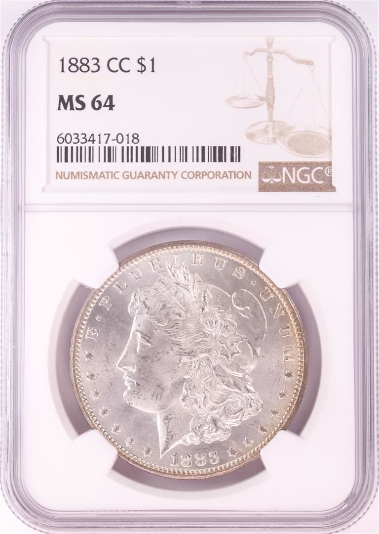 One 1883-CC $1 Morgan Silver Dollar Coin NGC MS64. NGC Certified.