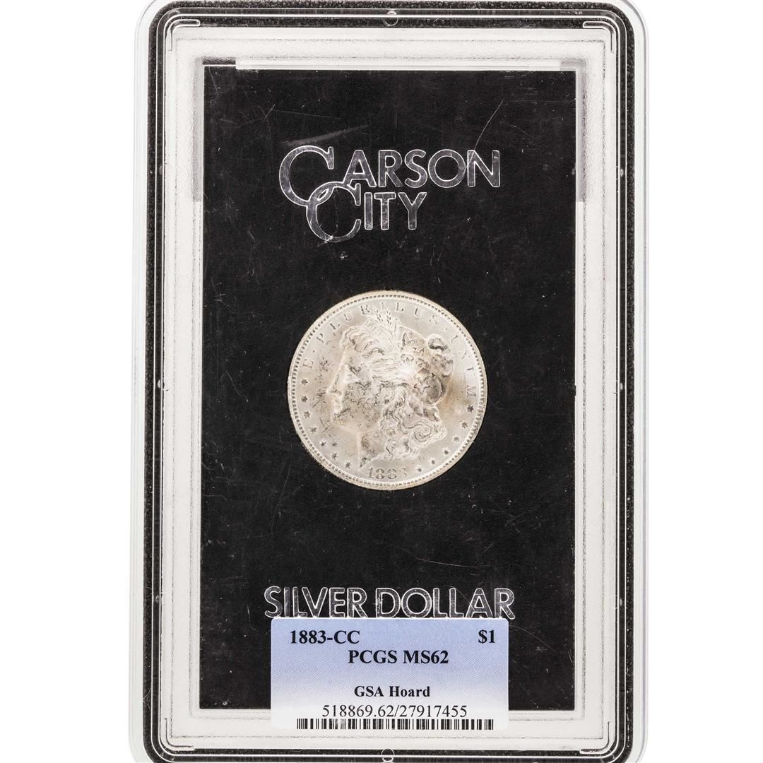 One 1883-CC $1 Morgan Silver Dollar Coin PCGS MS62 GSA. PCGS Graded.