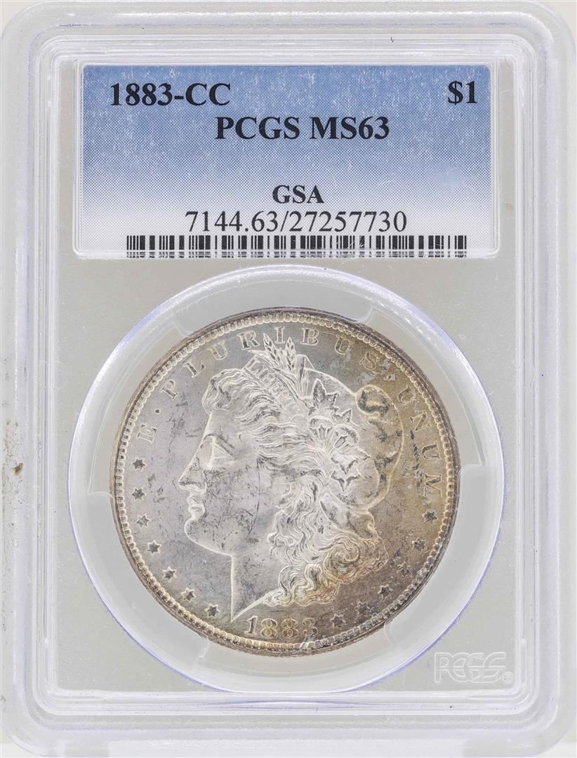 One 1883-CC $1 Morgan Silver Dollar Coin PCGS MS63 GSA. PCGS Graded.