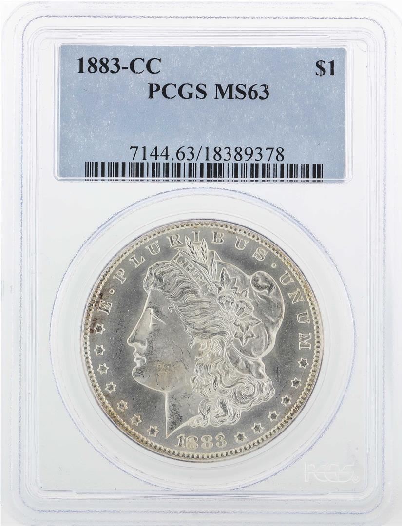 One 1883-CC $1 Morgan Silver Dollar Coin PCGS MS63. PCGS Graded.