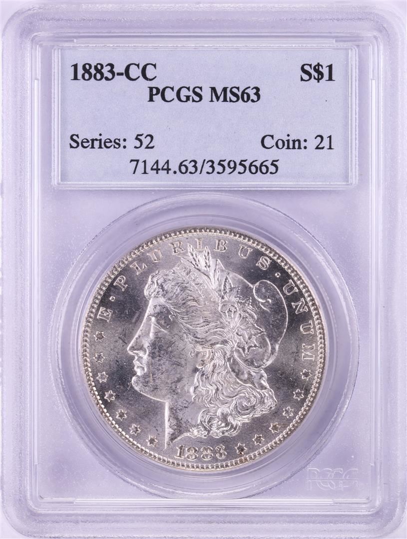 One 1883-CC $1 Morgan Silver Dollar Coin PCGS MS63. PCGS Graded.