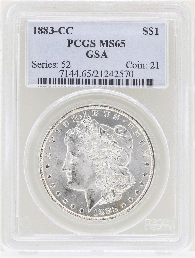 One 1883-CC $1 Morgan Silver Dollar Coin PCGS MS65 GSA. PCGS Graded.