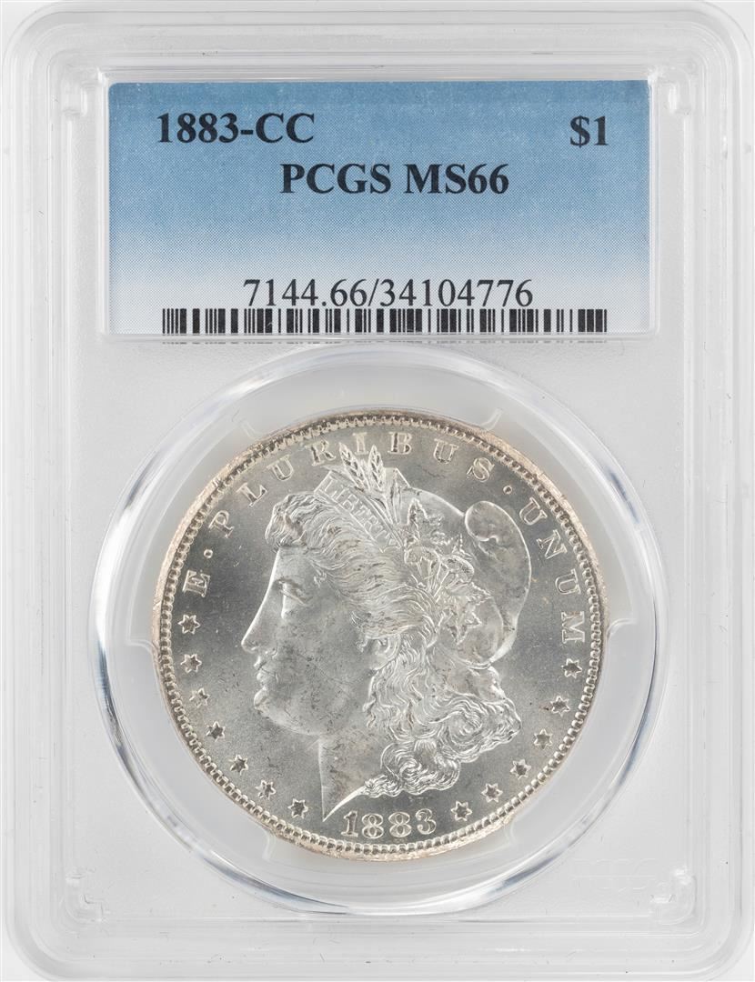 One 1883-CC $1 Morgan Silver Dollar Coin PCGS MS66. PCGS Graded.