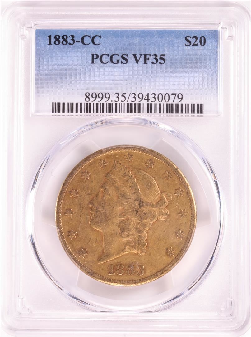 One 1883-CC $20 Liberty Head Double Eagle Gold Coin PCGS VF35. PCGS Graded.