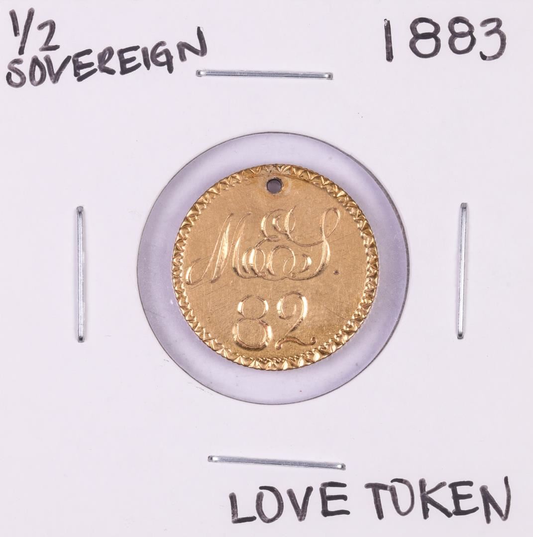 One 1883 Gold Half Sovereign Love Token Coin Holed.
