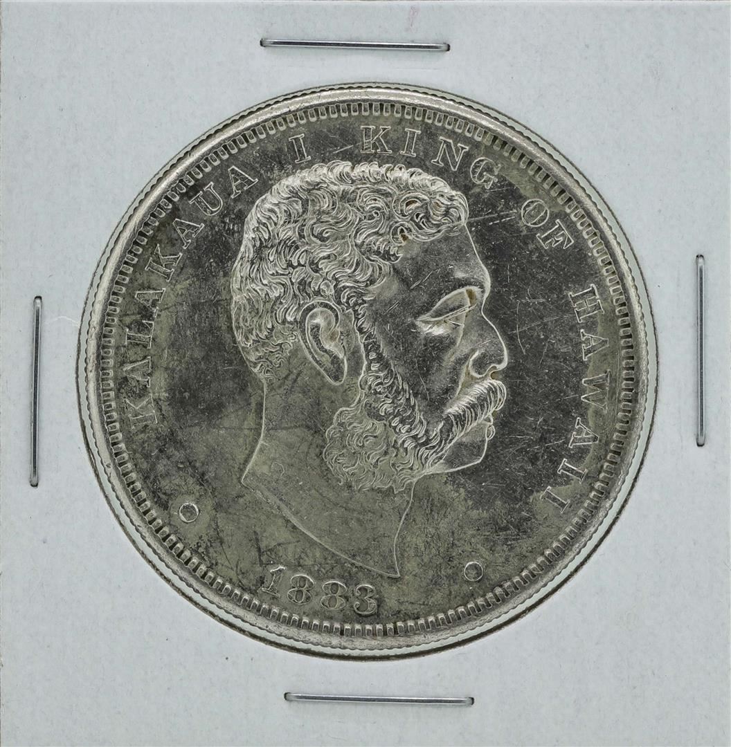 One 1883 Kingdom of Hawaii Dollar Coin.