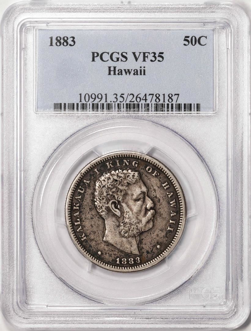 One 1883 Kingdom of Hawaii Half Dollar Coin PCGS VF35. PCGS Graded.