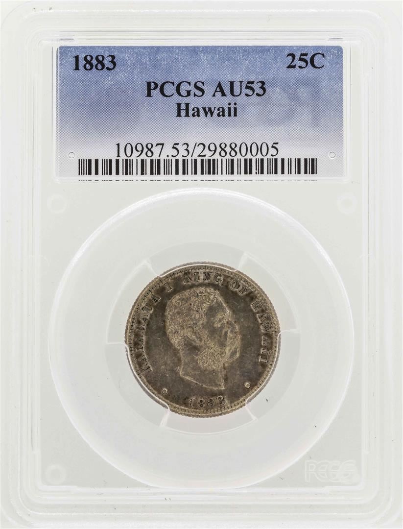 One 1883 Kingdom of Hawaii Quarter Coin PCGS AU53. PCGS Graded.