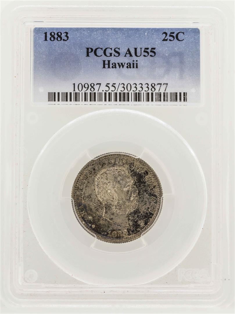 One 1883 Kingdom of Hawaii Quarter Coin PCGS AU55. PCGS Graded.