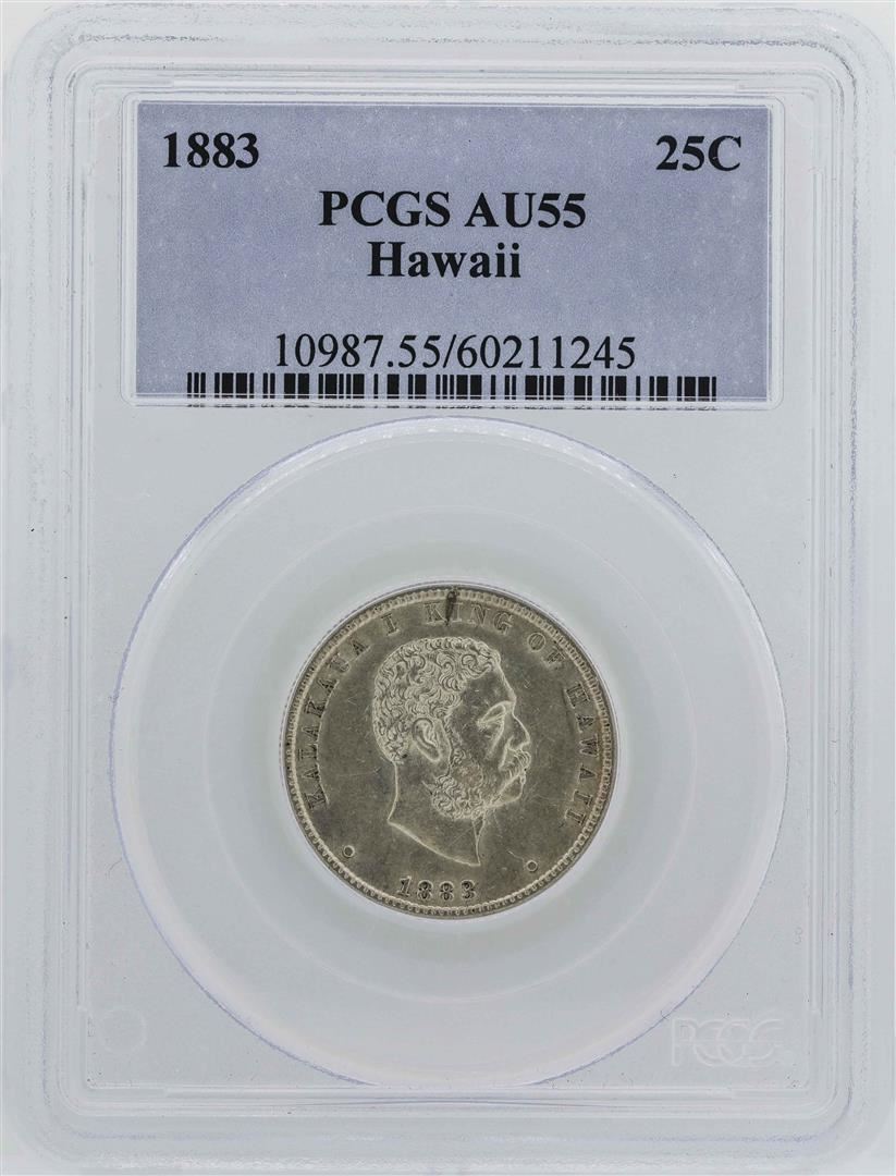 One 1883 Kingdom of Hawaii Quarter Coin PCGS AU55. PCGS Graded.