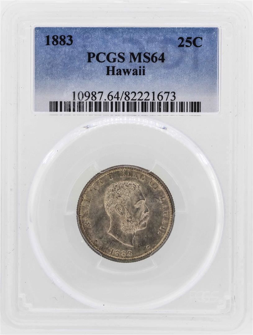 One 1883 Kingdom of Hawaii Quarter Coin PCGS MS64. PCGS Graded.