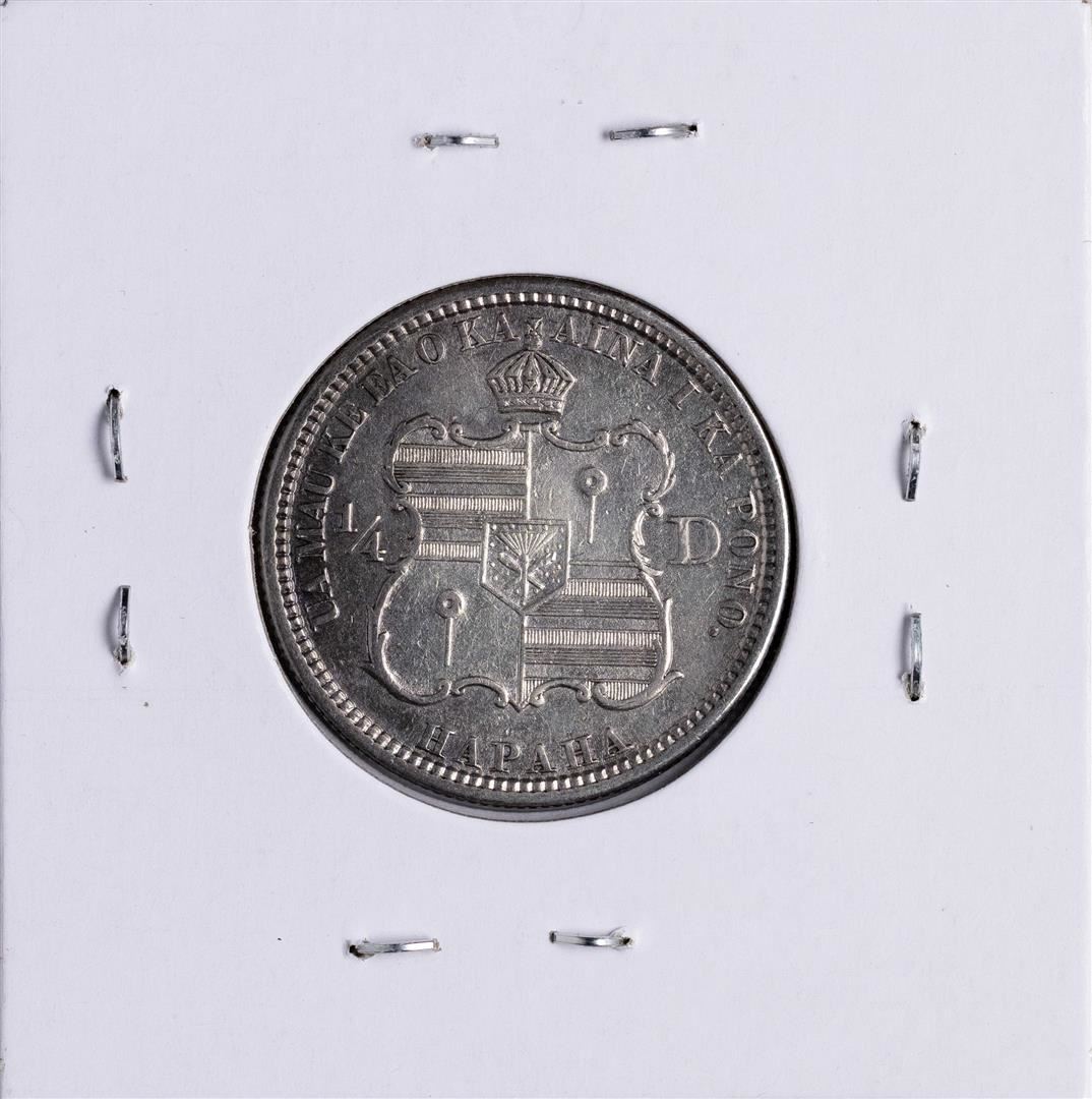 One 1883 Kingdom of Hawaii Quarter Coin.