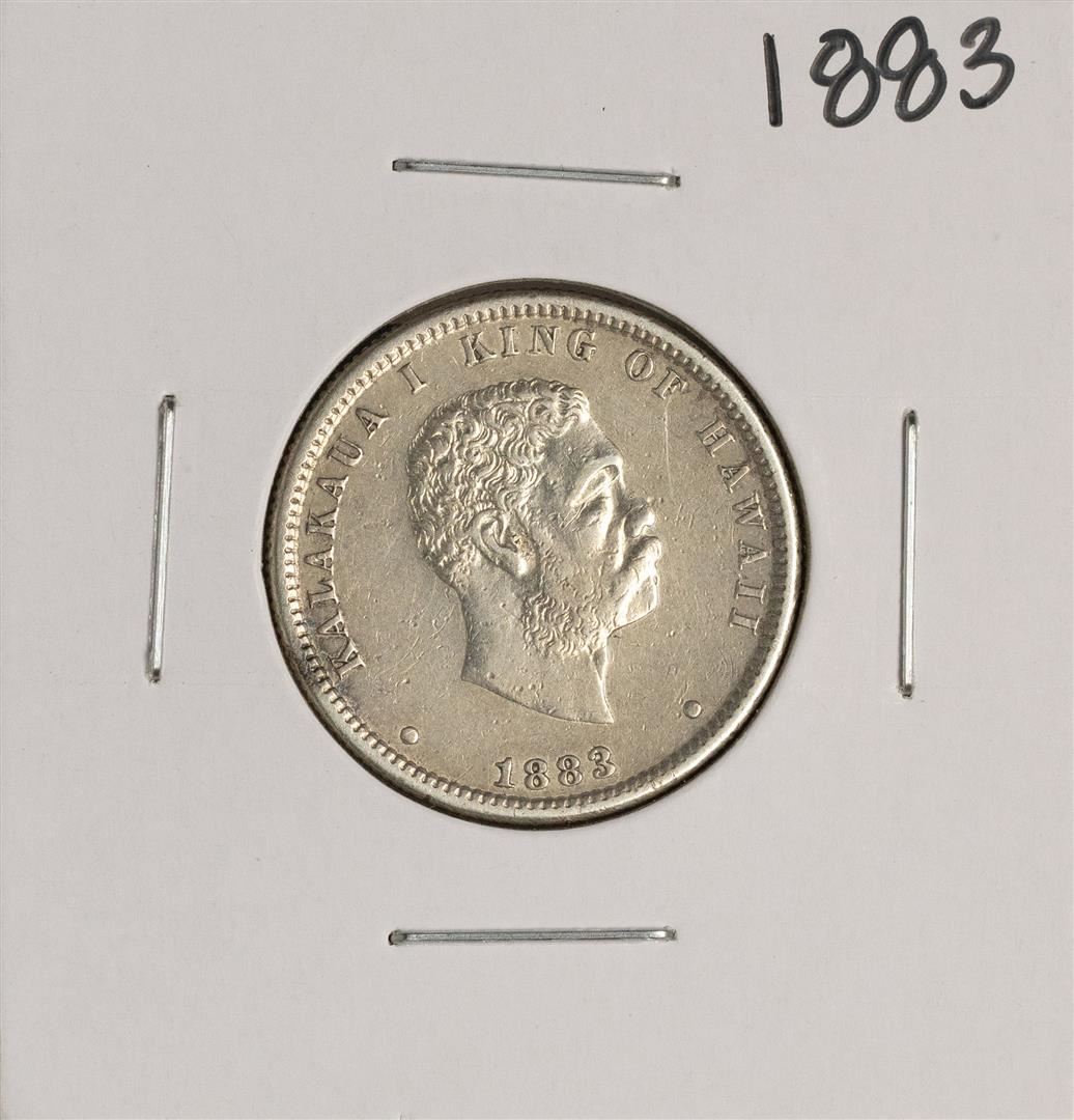 One 1883 Kingdom of Hawaii Quarter Dollar Coin.
