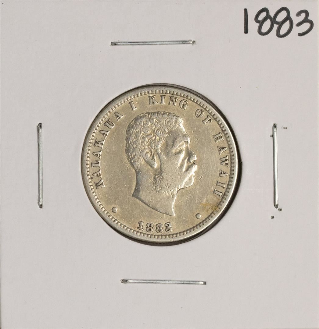 One 1883 Kingdom of Hawaii Quarter Dollar Coin.