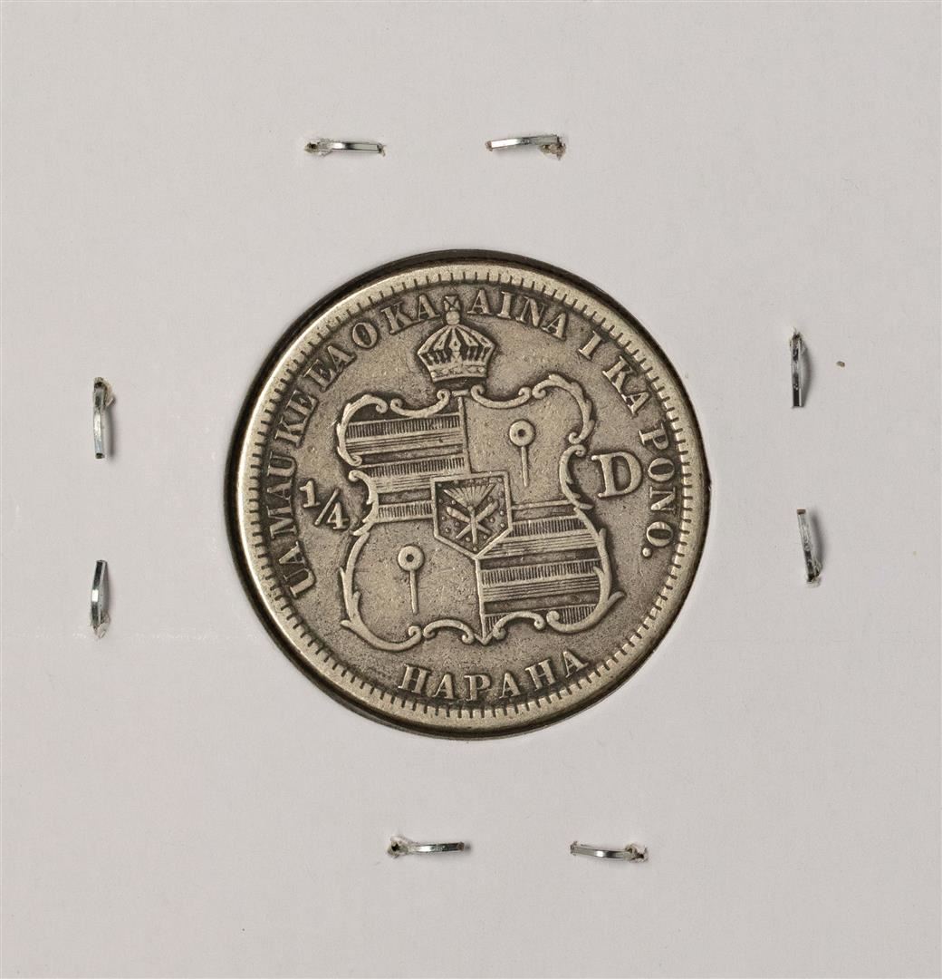 One 1883 Kingdom of Hawaii Quarter Dollar Coin.