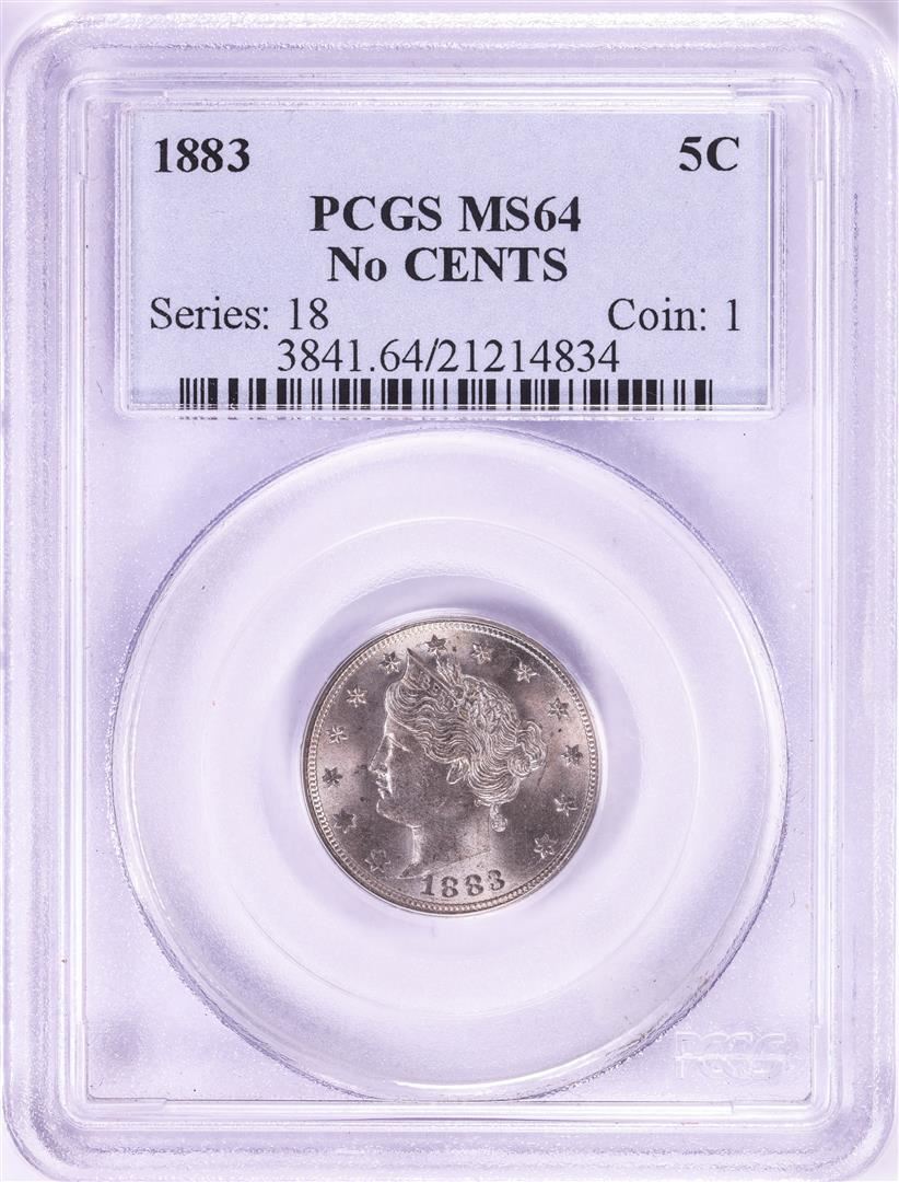 One 1883 No Cents Liberty V Nickel Coin PCGS MS64. PCGS Graded.