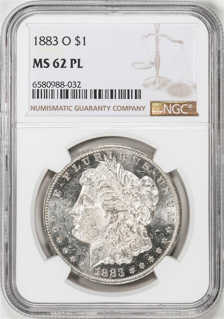 One 1883-O $1 Morgan Silver Dollar Coin NGC MS62PL. NGC Certified.