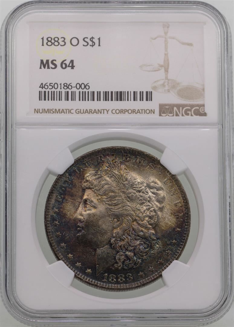 One 1883-O $1 Morgan Silver Dollar Coin NGC MS64 AMAZING Toning. NGC Certified.