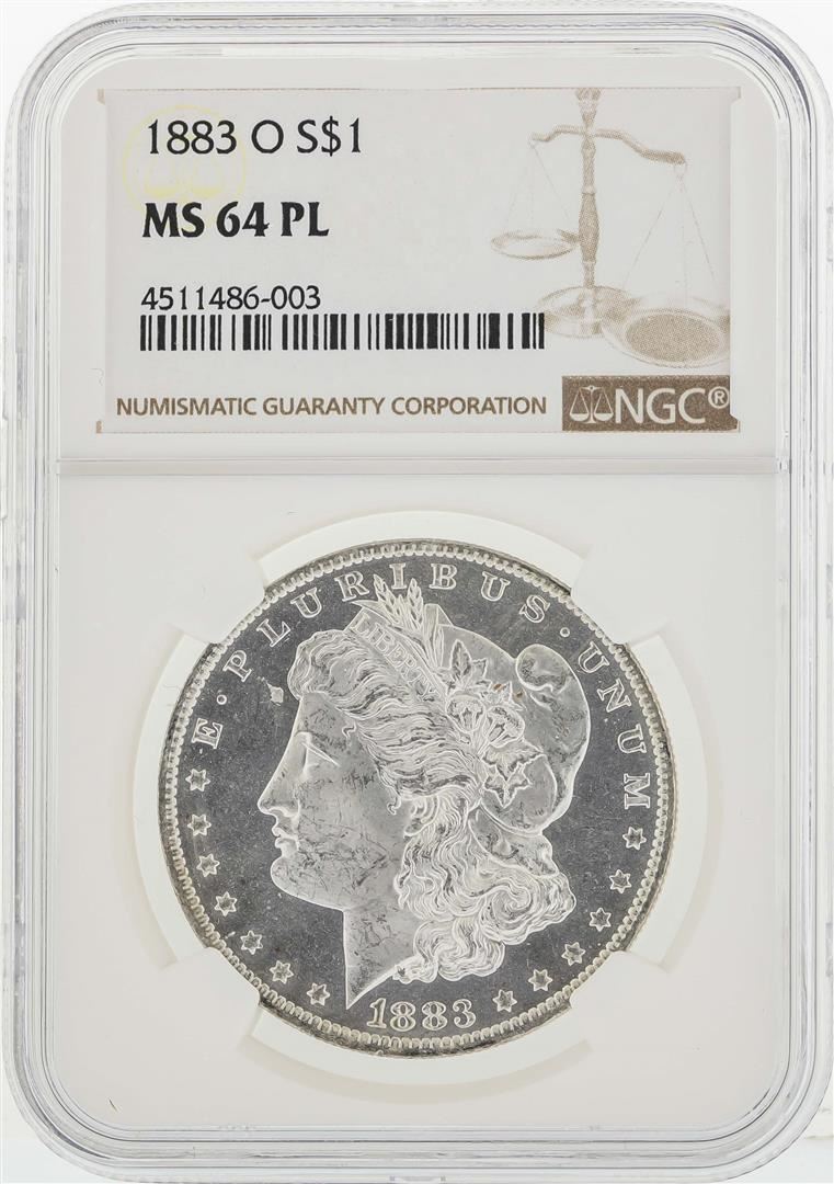 One 1883-O $1 Morgan Silver Dollar Coin NGC MS64PL. NGC Certified.