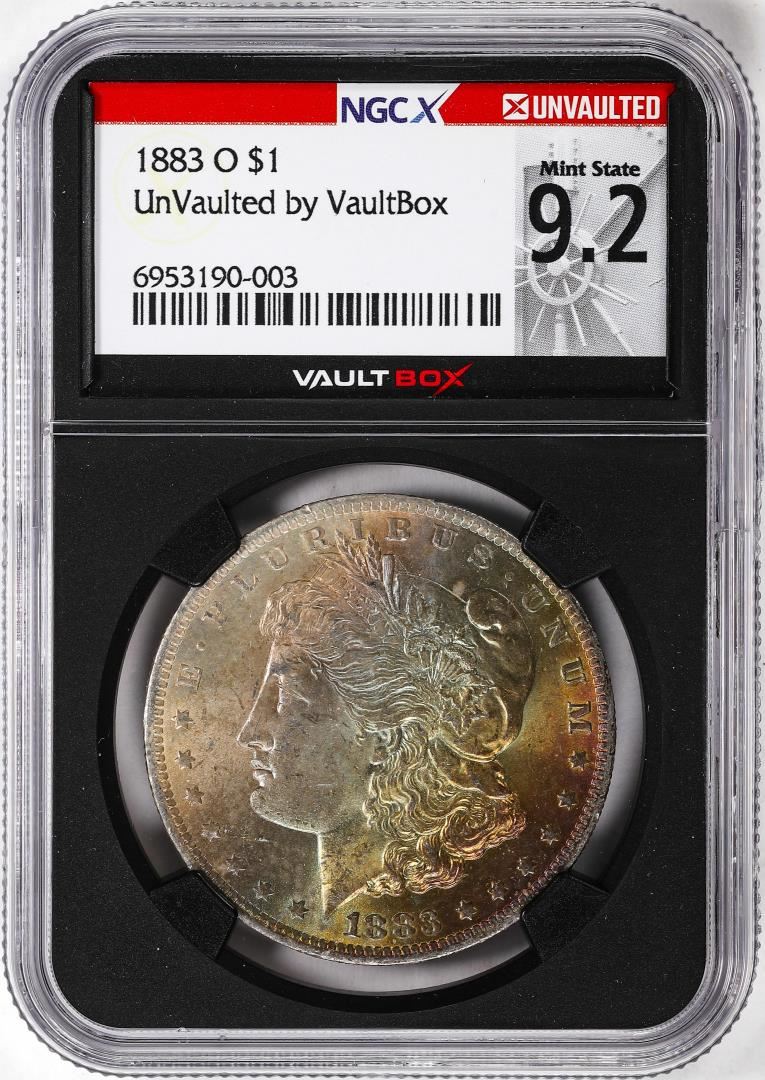 One 1883-O $1 Morgan Silver Dollar Coin NGCX Mint State 9.2 VaultBox Amazing Toning. NGCX Certified.