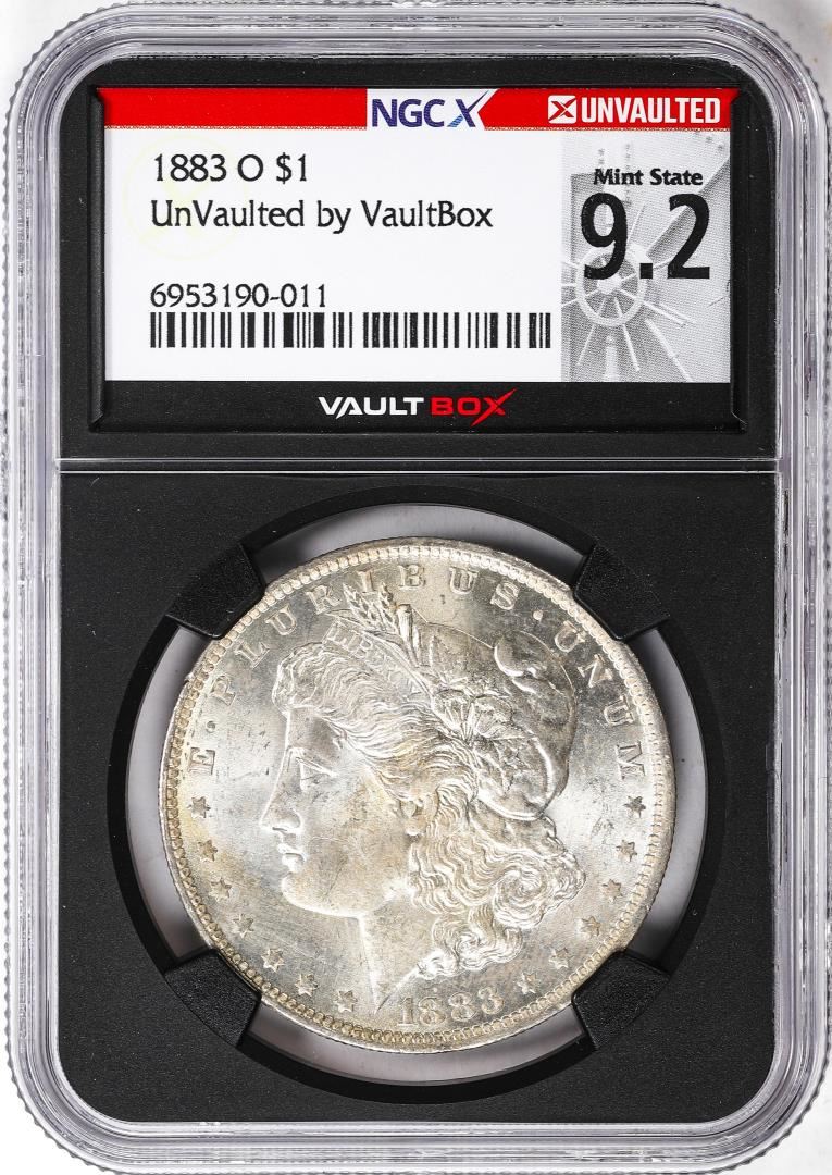 One 1883-O $1 Morgan Silver Dollar Coin NGCX Mint State 9.2 VaultBox Unvaulted. NGCX Certified.