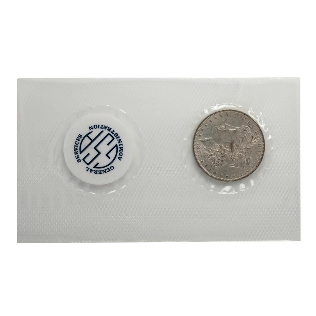 One 1883-O $1 Morgan Silver Dollar Coin with GSA Soft Pack and Envelope.