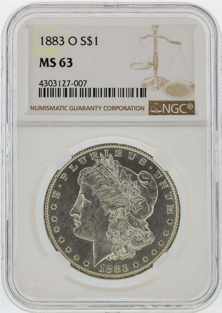 One 1883-O $1 Morgan Silver Dollar NGC Graded MS63. NGC Certified.