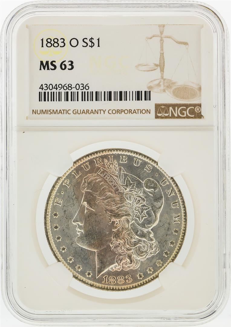 One 1883-O $1 Morgan Silver Dollar NGC Graded MS63. NGC Certified.