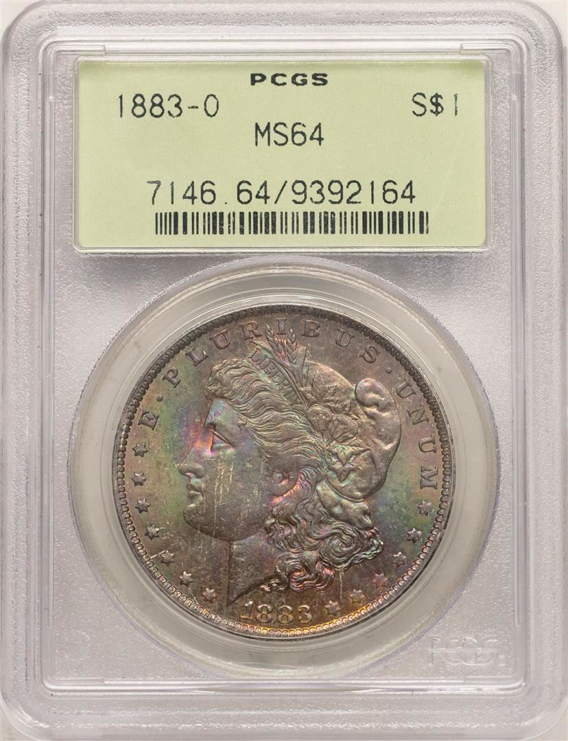 1883-O $1 Morgan Silver Dollar PCGS MS64 Amazing Toning Old Green Holder