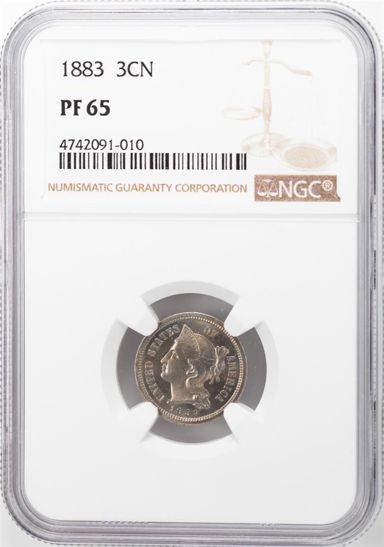 One 1883 Proof Three Cent Nickel Coin NGC PF65. NGC Certified.