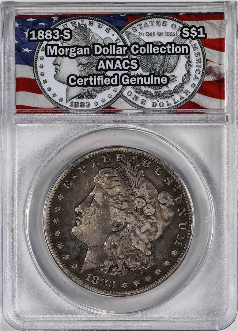 One 1883-S $1 Morgan Silver Dollar Coin ANACS Genuine. ANACS Certified.