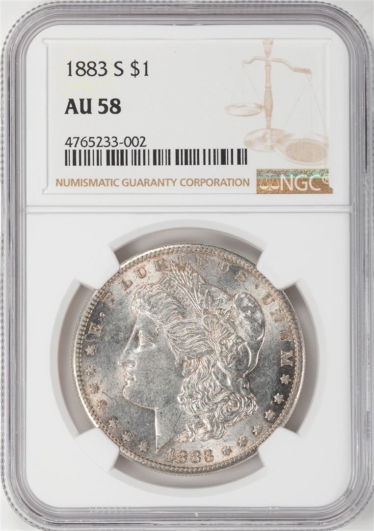 One 1883-S $1 Morgan Silver Dollar Coin NGC AU58. NGC Certified.