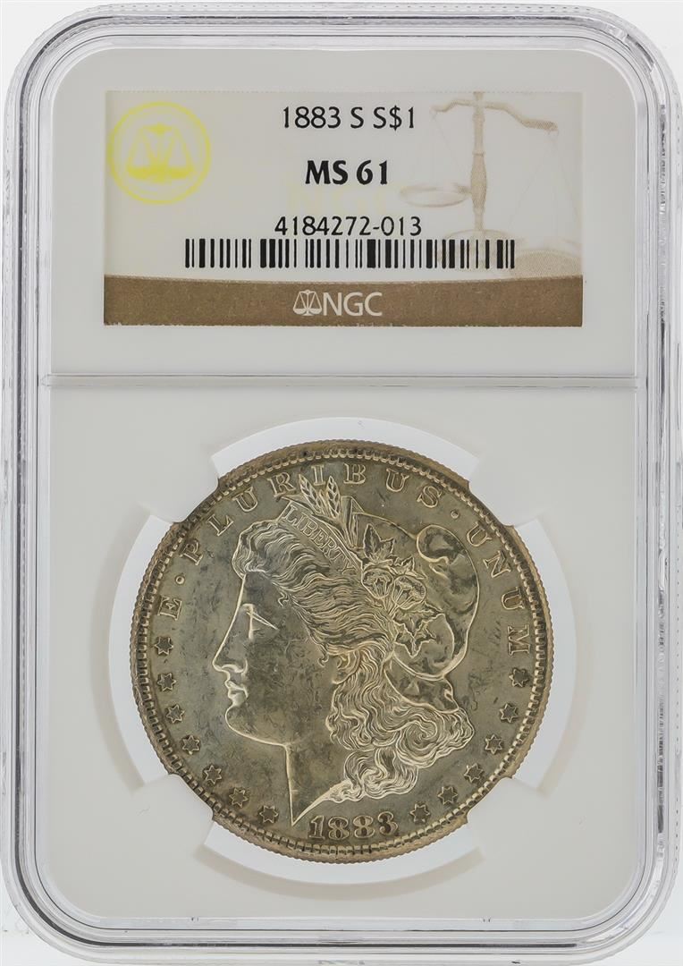 One 1883-S $1 Morgan Silver Dollar Coin NGC Graded MS61. NGC Certified.
