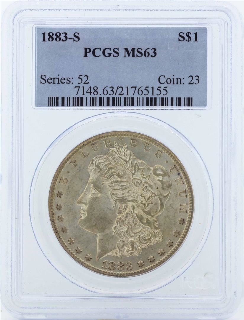One 1883-S $1 Morgan Silver Dollar Coin PCGS MS63. PCGS Graded.