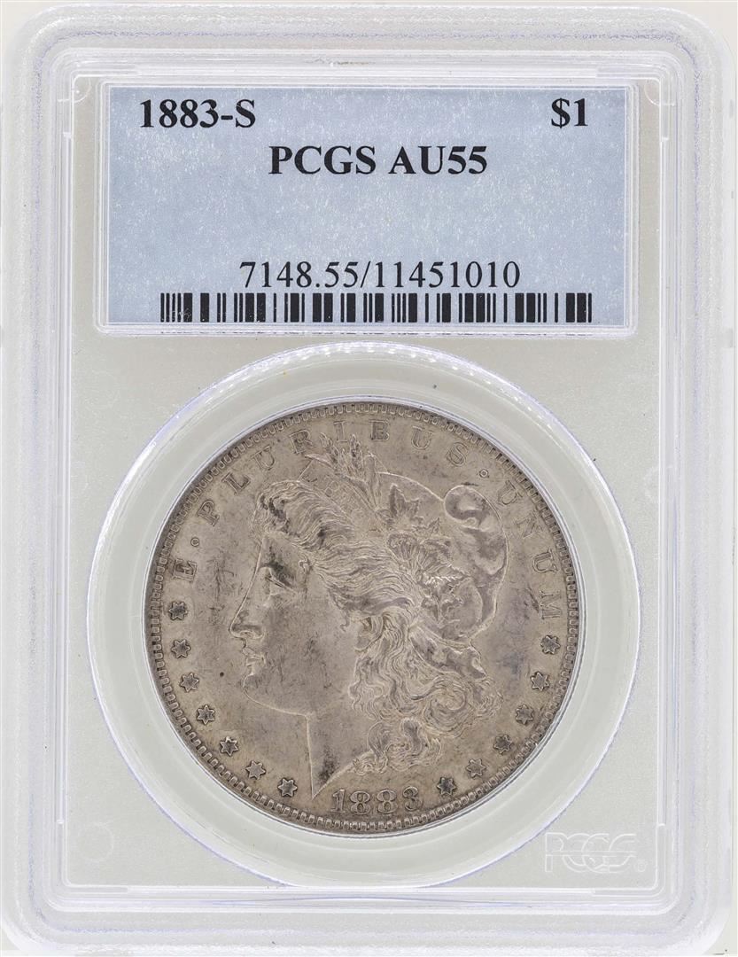 One 1883-S $1 Morgan Silver Dollar Coin VAM 6 PCGS AU55. PCGS Graded.