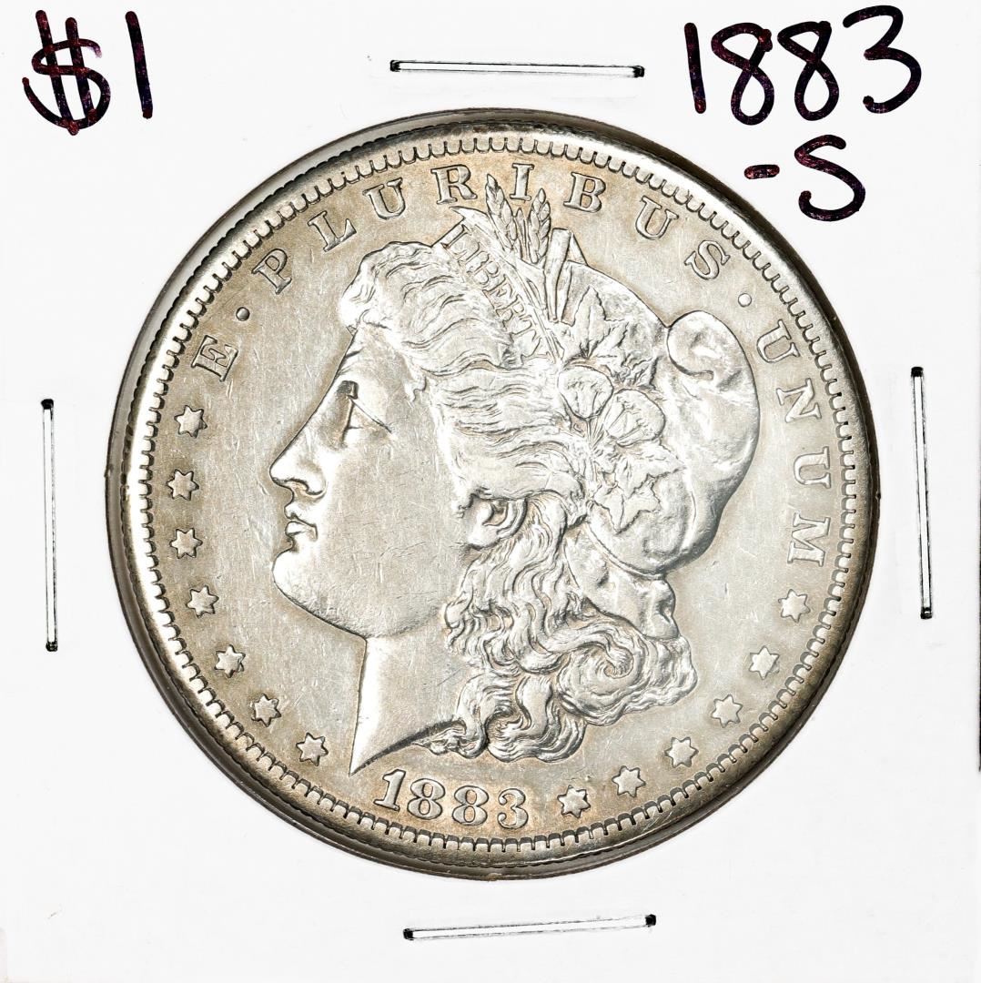 One 1883-S $1 Morgan Silver Dollar Coin.