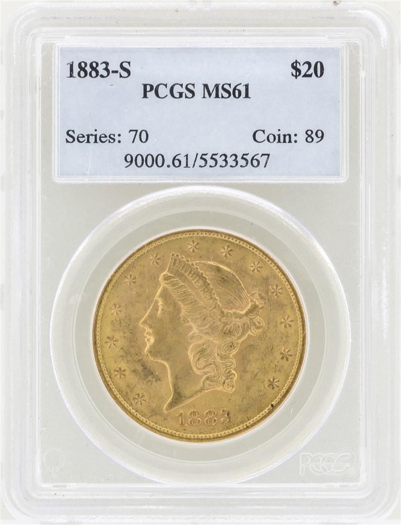 One 1883-S $20 Liberty Head Double Eagle Gold Coin PCGS MS61. PCGS Graded.