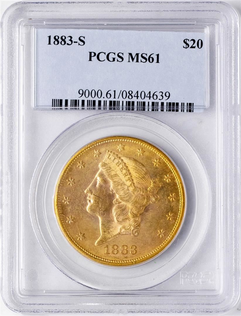 One 1883-S $20 Liberty Head Double Eagle Gold Coin PCGS MS61. PCGS Graded.