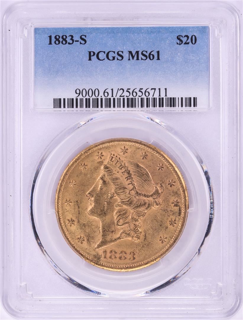 One 1883-S $20 Liberty Head Double Eagle Gold Coin PCGS MS61. PCGS Graded.