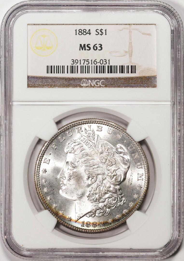 1884 $1 Morgan Silver Dollar Coin NGC MS63 Nice Toning